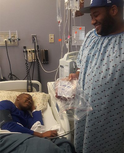 Now 29, and still unwilling to give up, his doctors presented him with one last treatment option - an allogeneic stem cell transplant. This high-risk procedure has a greater fatality rate than other transplants as a patient’s body has only 14 days to accept the donor bone marrow and successfully begin to generate new blood. With the help of his brother as his bone marrow donor, Aaron received the transplant, and began to produce new blood. This procedure not only saved his life, but also made his brother and him 98% DNA based twins- and his world started to turn yet again.